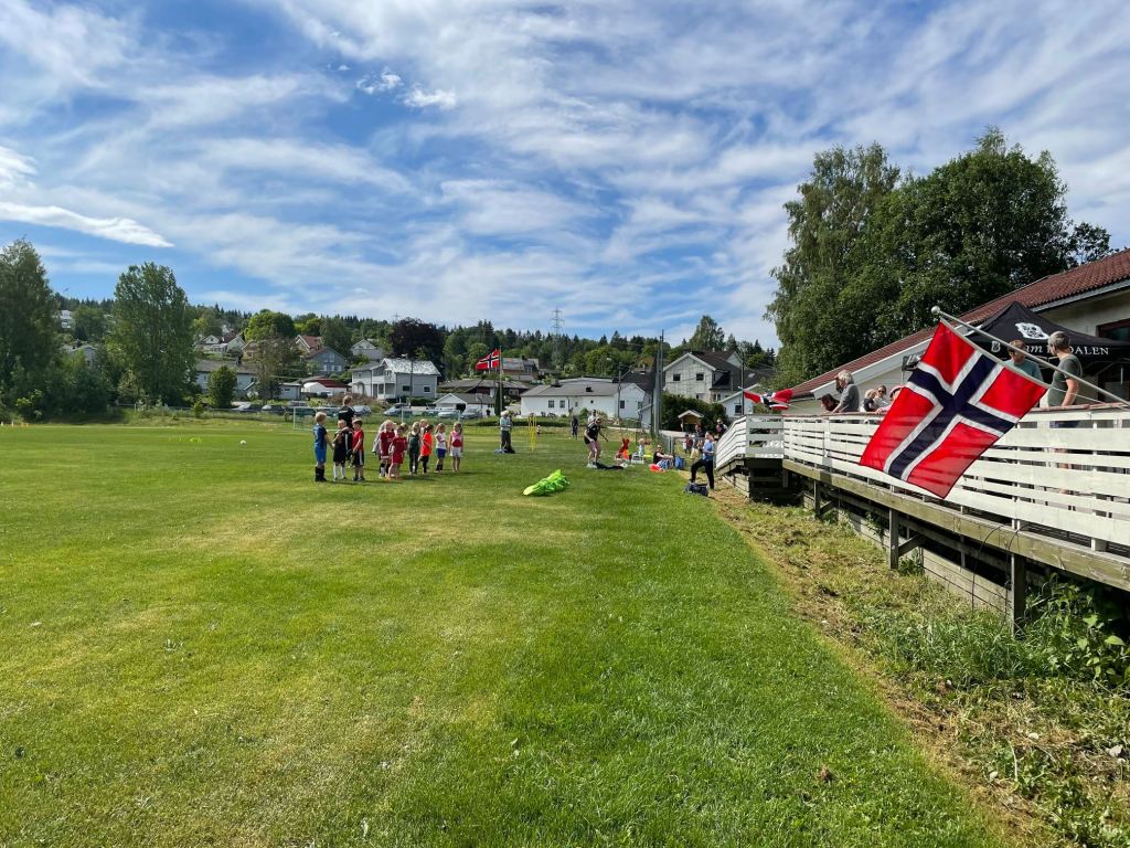 for barna i klubben. Vi delte dagen i to, først de yngste, deretter de eldste, og barna var i faste grupper. Vi samarbeidet i år igjen med Kiwi Bødalen, og serverte frukt til barna, samt at alle fikk fullstappet bag med Kiwi-premier og litt godteri på slutten av sin økt. Vi hadde perfekt vær, det var god stemning, og barna koste seg veldig. Vi er så fornøyde med dette gratis-arrangementet som vi erstattet med vår tradisjonelle fotballskole for å være helt sikre på at vi kunne arrangere noe for barna som ikke måtte avlyses.